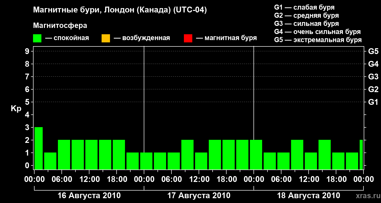 Магнитные бури Лондоне (Канада) в августе 2010 года