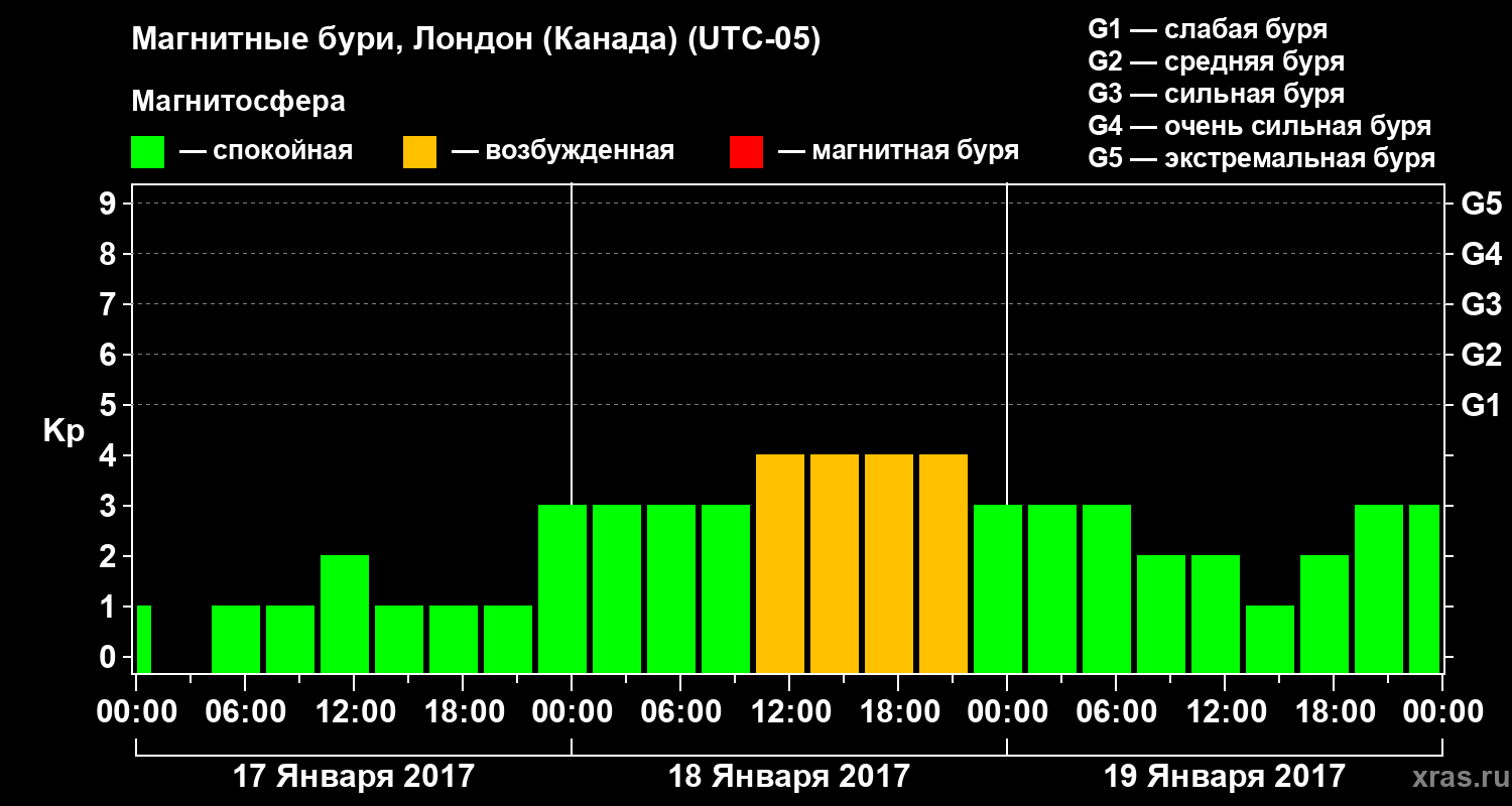 Магнитные бури Лондоне (Канада) 19 января 2017 года