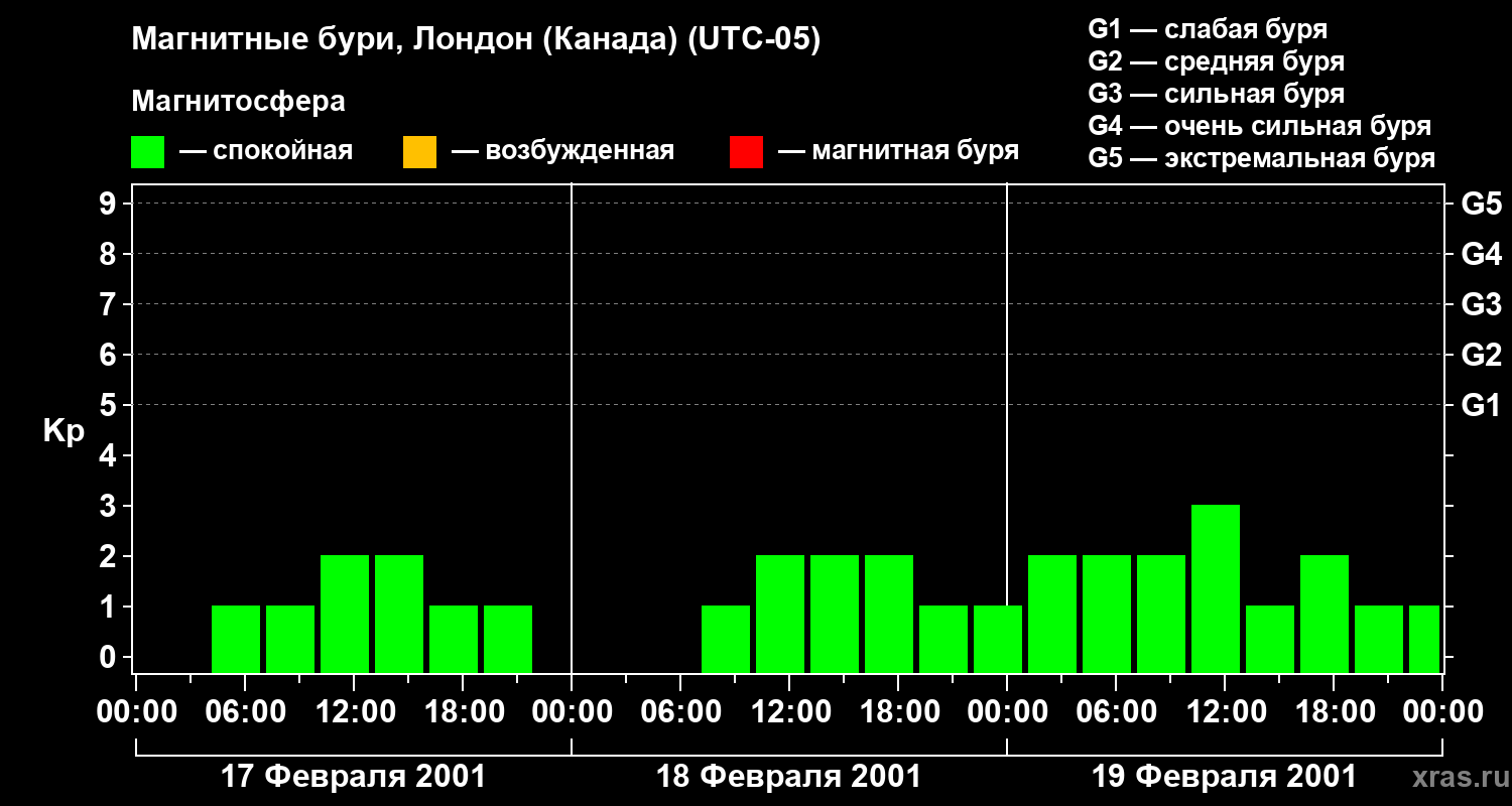 Магнитные бури Лондоне (Канада) — 19 февраля 2001 года