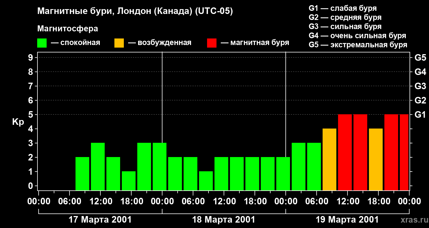 Магнитные бури Лондоне (Канада) — 19 марта 2001 года