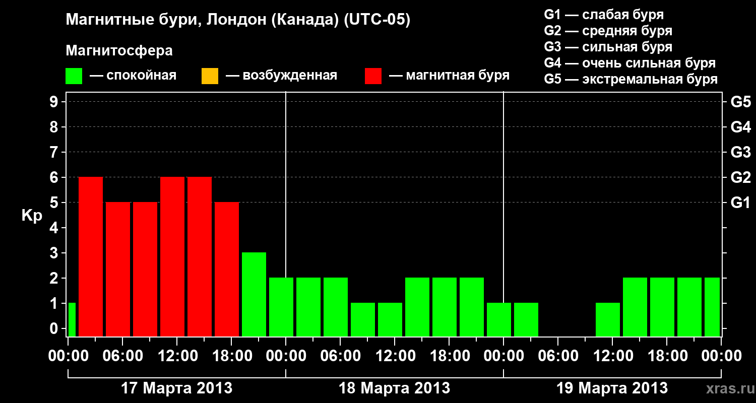 Магнитные бури Лондоне (Канада) 19 марта 2013 года
