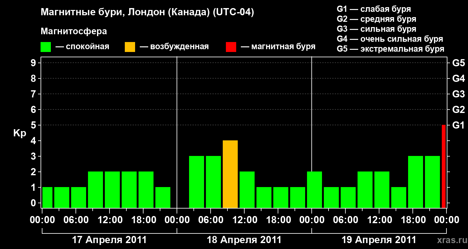 Магнитные бури Лондоне (Канада) — 19 апреля 2011 года