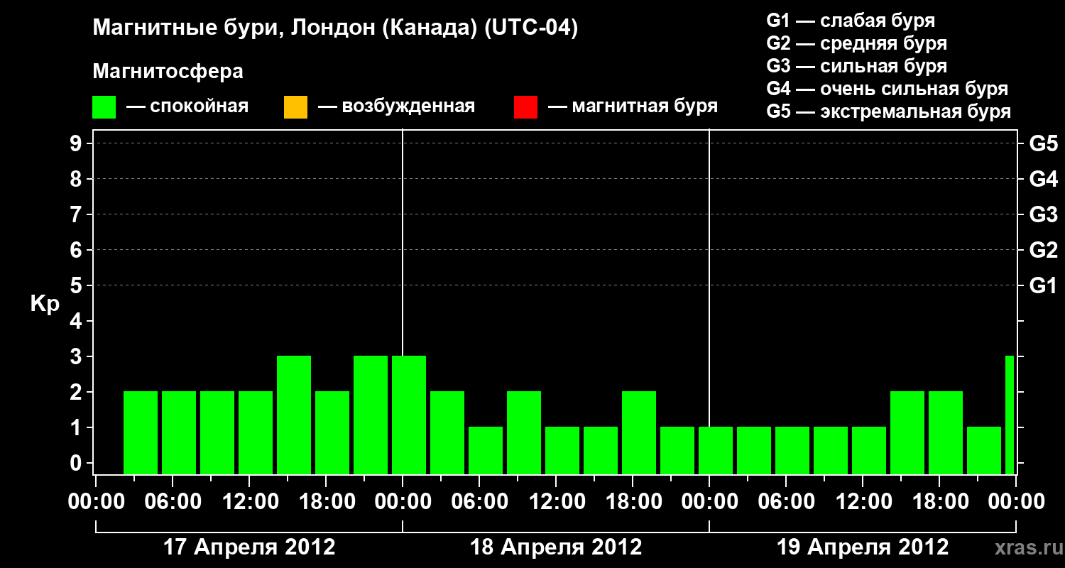 Магнитные бури Лондоне (Канада) 19 апреля 2012 года