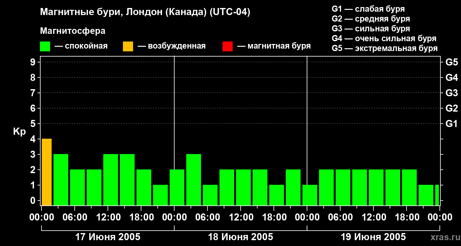 Магнитные бури Лондоне (Канада) — 19 июня 2005 года