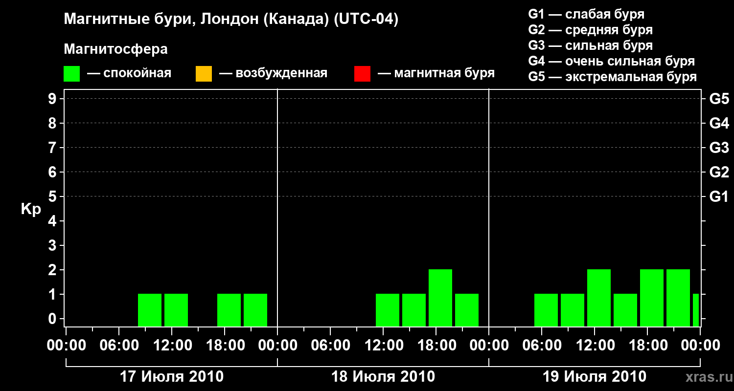 Магнитные бури Лондоне (Канада) 19 июля 2010 года