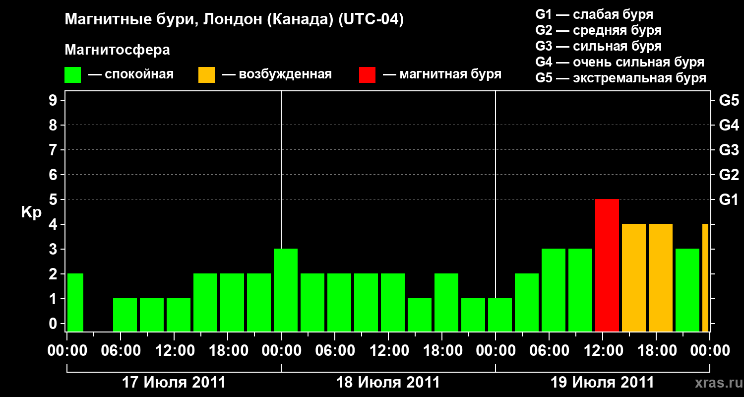 Магнитные бури Лондоне (Канада) — 19 июля 2011 года