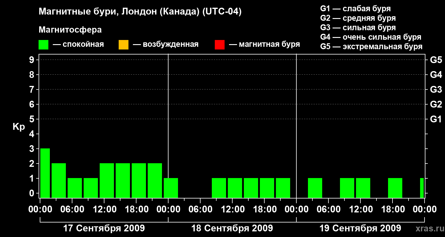 Магнитные бури Лондоне (Канада) в сентябре 2009 года