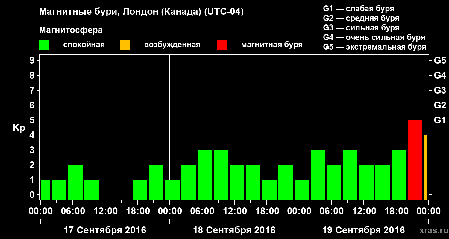 Магнитные бури Лондоне (Канада) 19 сентября 2016 года