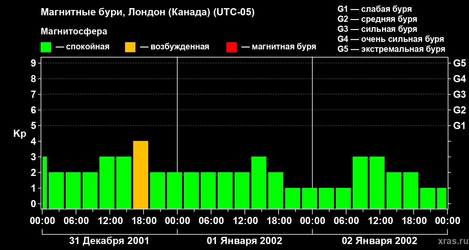 Магнитные бури Лондоне (Канада) 2 января 2002 года