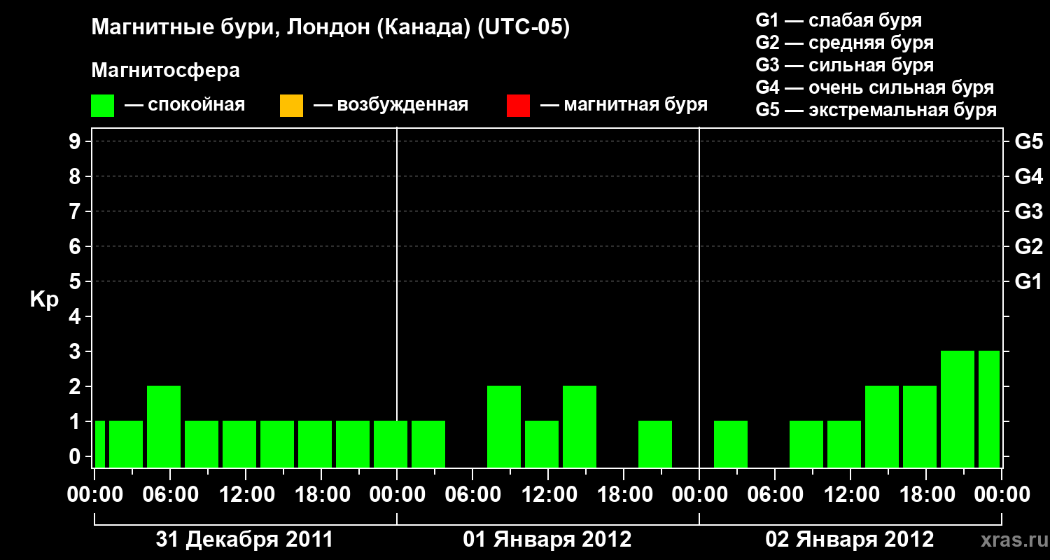 Магнитные бури Лондоне (Канада) 2 января 2012 года