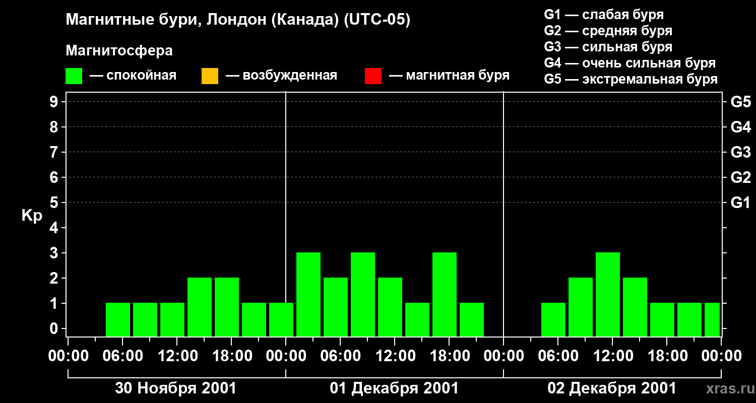 Магнитные бури Лондоне (Канада) — 2 декабря 2001 года