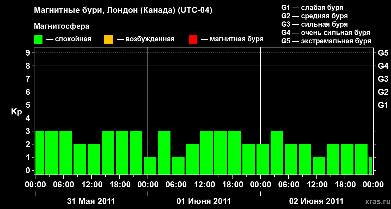 Магнитные бури Лондоне (Канада) 2 июня 2011 года