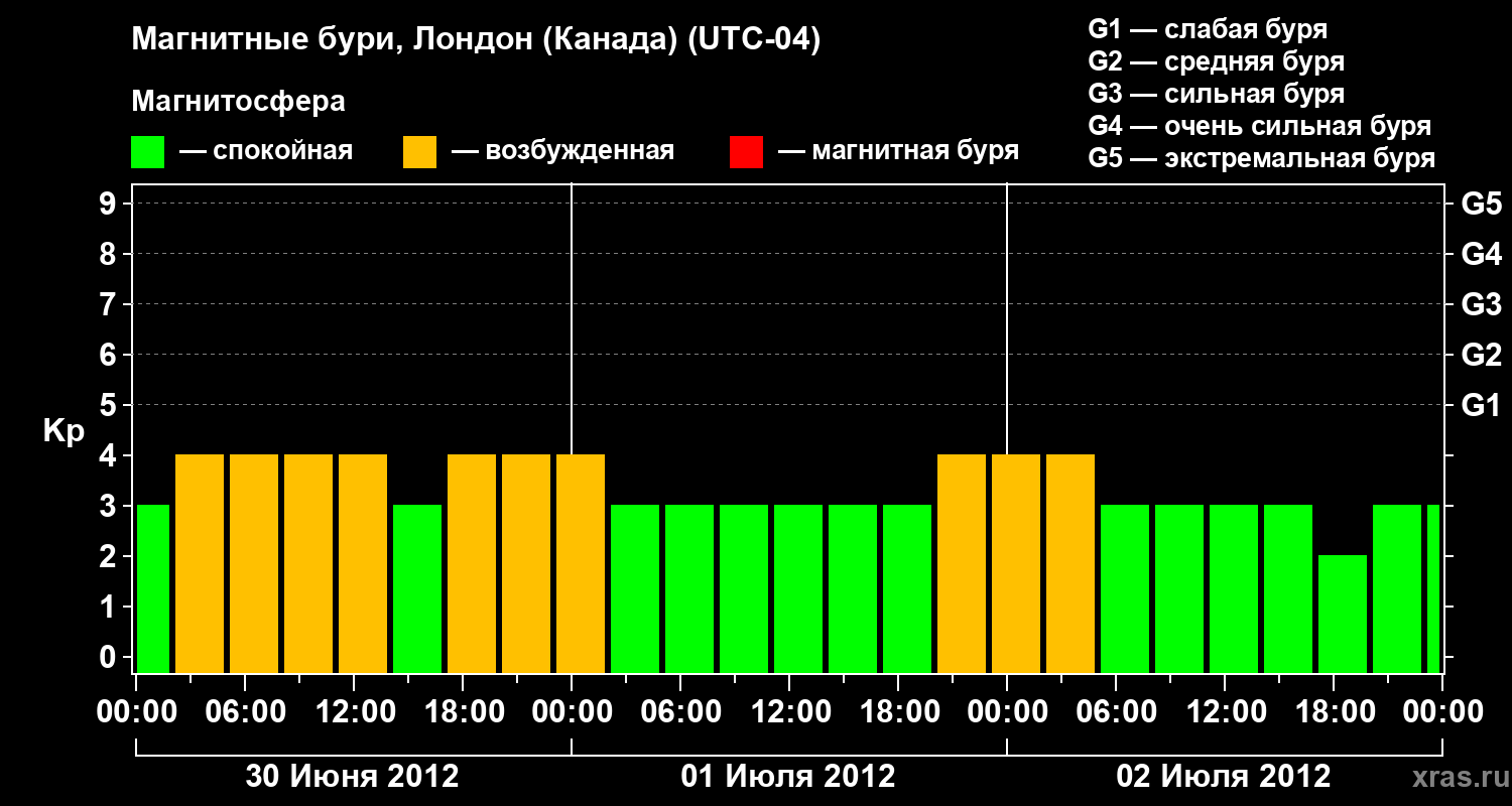 Магнитные бури Лондоне (Канада) в июле 2012 года