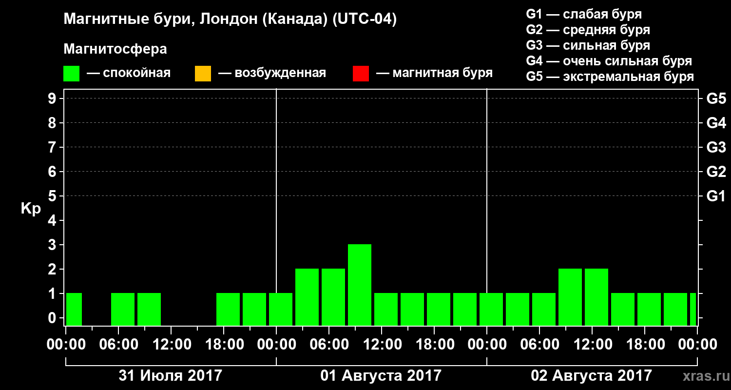 Магнитные бури Лондоне (Канада) 2 августа 2017 года