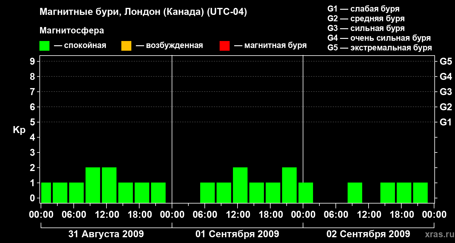 Магнитные бури Лондоне (Канада) 2 сентября 2009 года