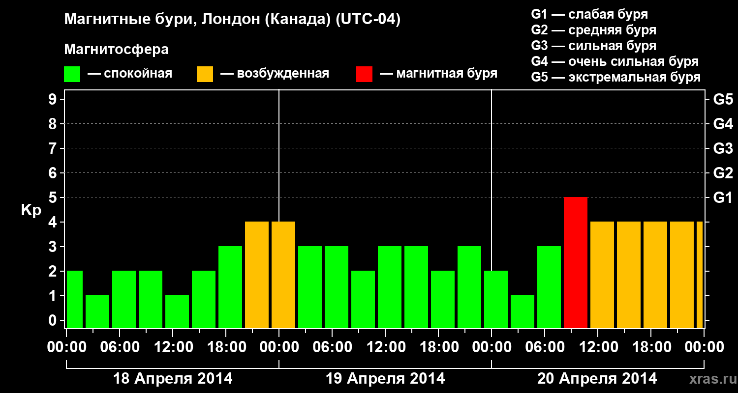 Магнитные бури Лондоне (Канада) 20 апреля 2014 года