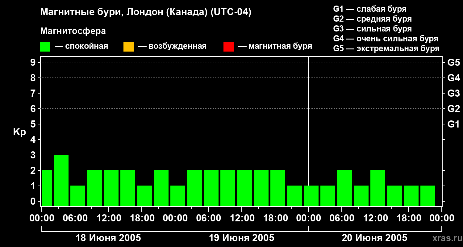Магнитные бури Лондоне (Канада) — 20 июня 2005 года