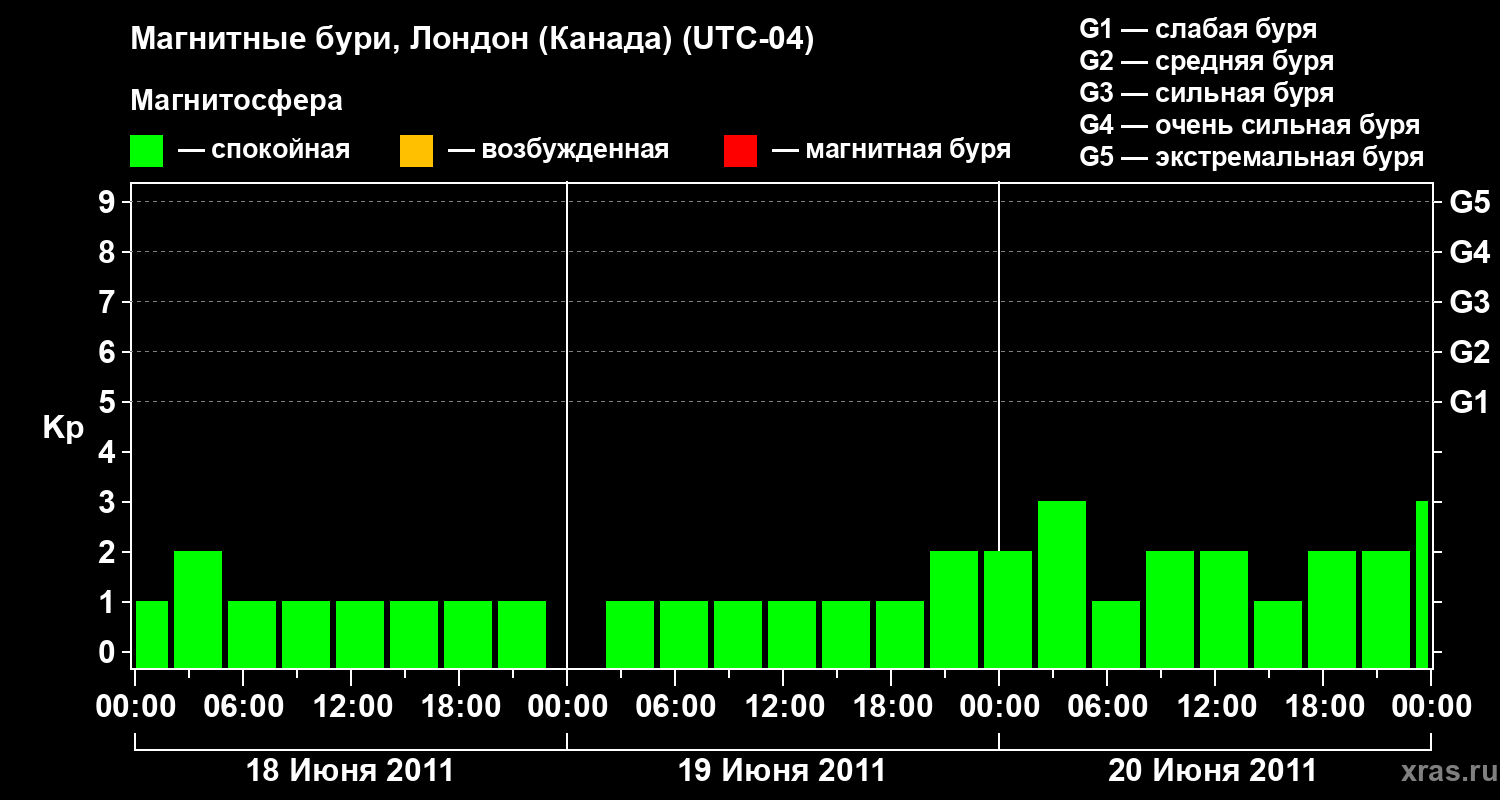 Магнитные бури Лондоне (Канада) 20 июня 2011 года