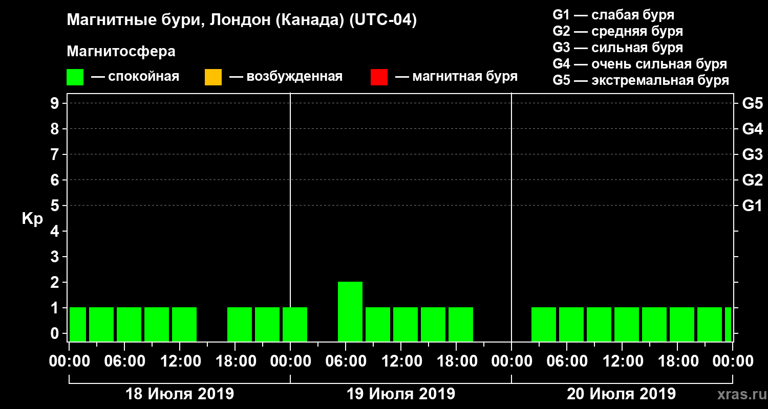 Магнитные бури Лондоне (Канада) — 20 июля 2019 года
