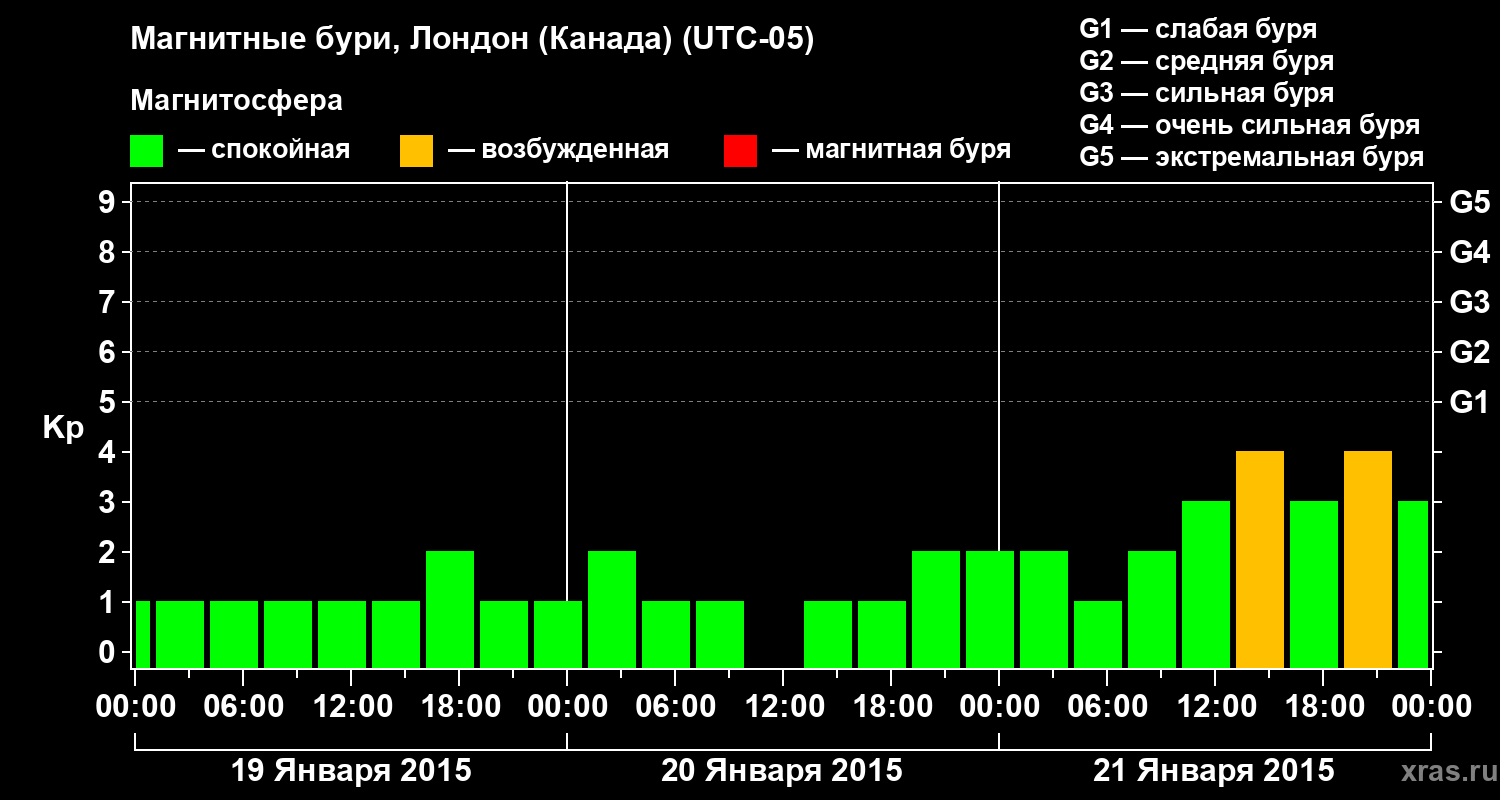 Магнитные бури Лондоне (Канада) 21 января 2015 года