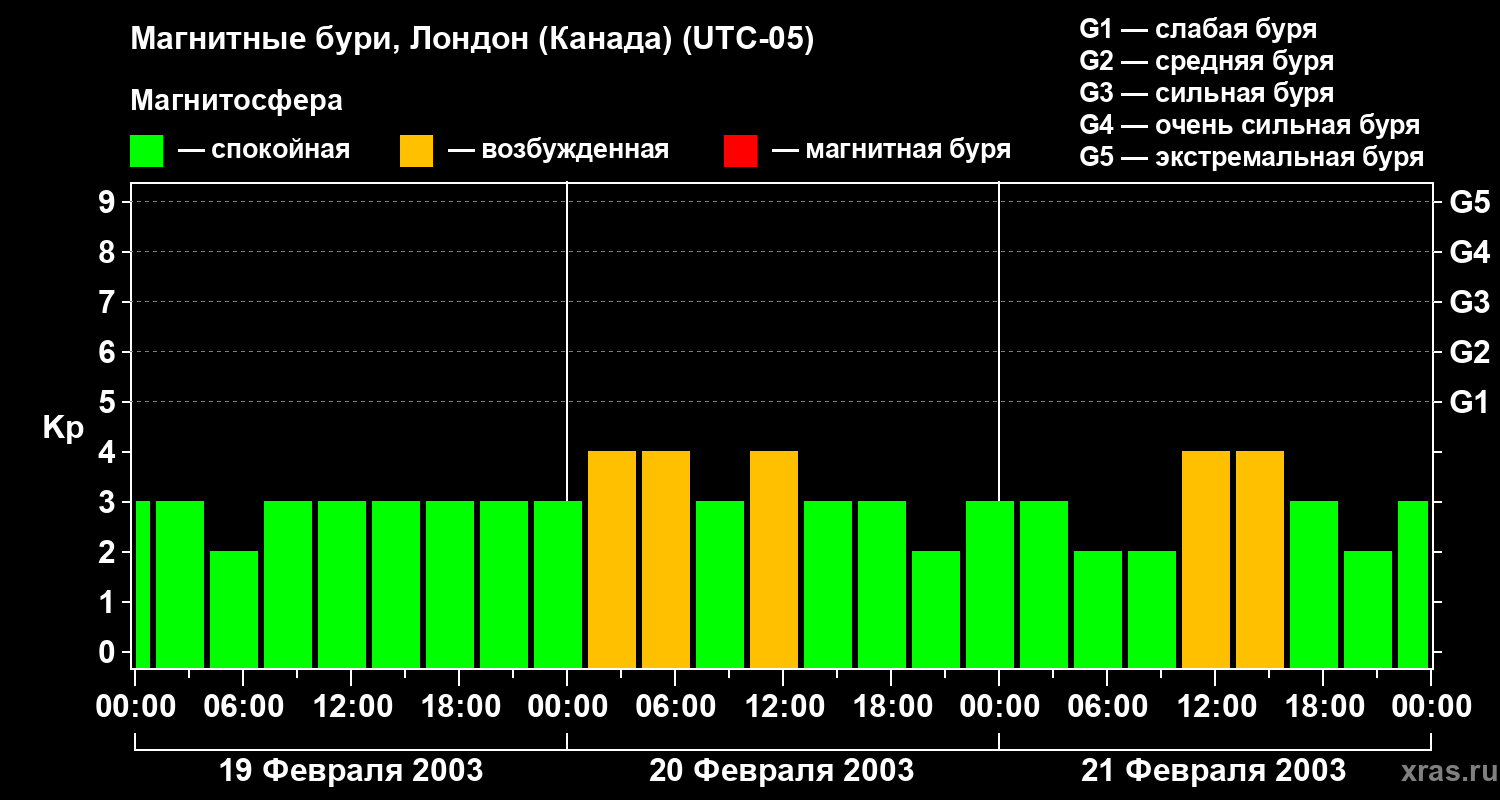 Магнитные бури Лондоне (Канада) в феврале 2003 года