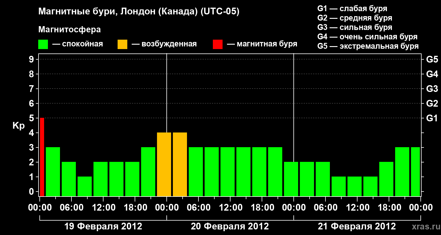 Магнитные бури Лондоне (Канада) в феврале 2012 года