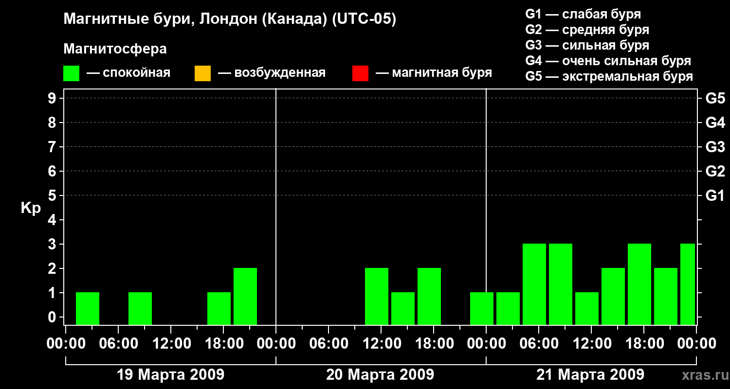 Магнитные бури Лондоне (Канада) — 21 марта 2009 года