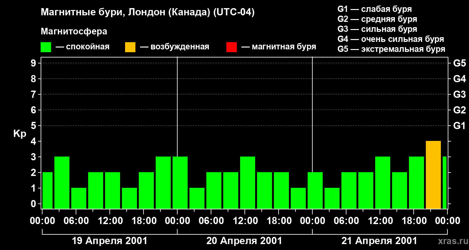 Магнитные бури Лондоне (Канада) в апреле 2001 года