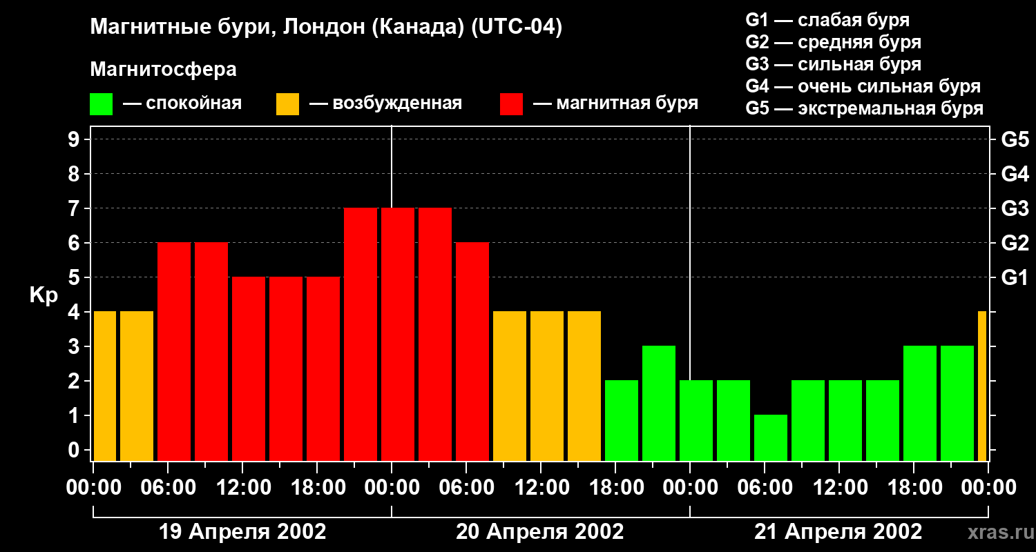 Магнитные бури Лондоне (Канада) в апреле 2002 года