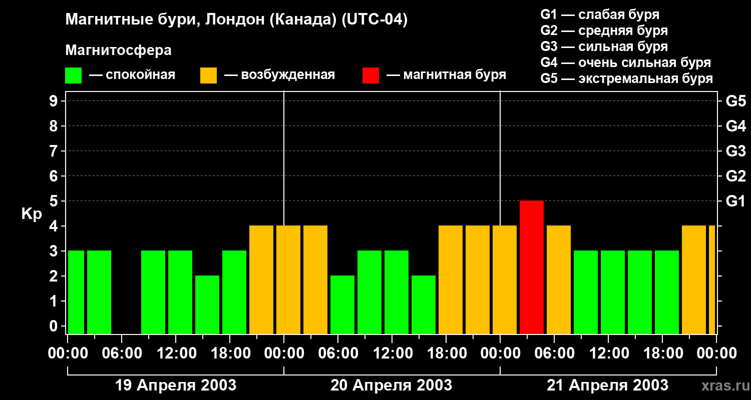 Магнитные бури Лондоне (Канада) в апреле 2003 года