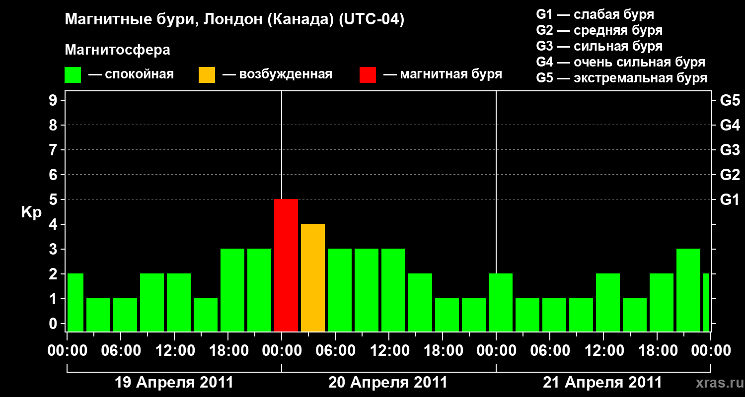 Магнитные бури Лондоне (Канада) — 21 апреля 2011 года