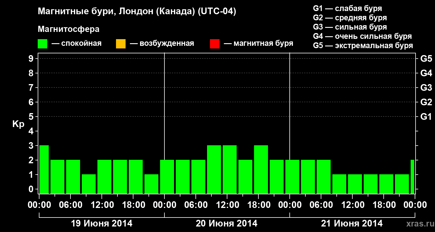 Магнитные бури Лондоне (Канада) 21 июня 2014 года
