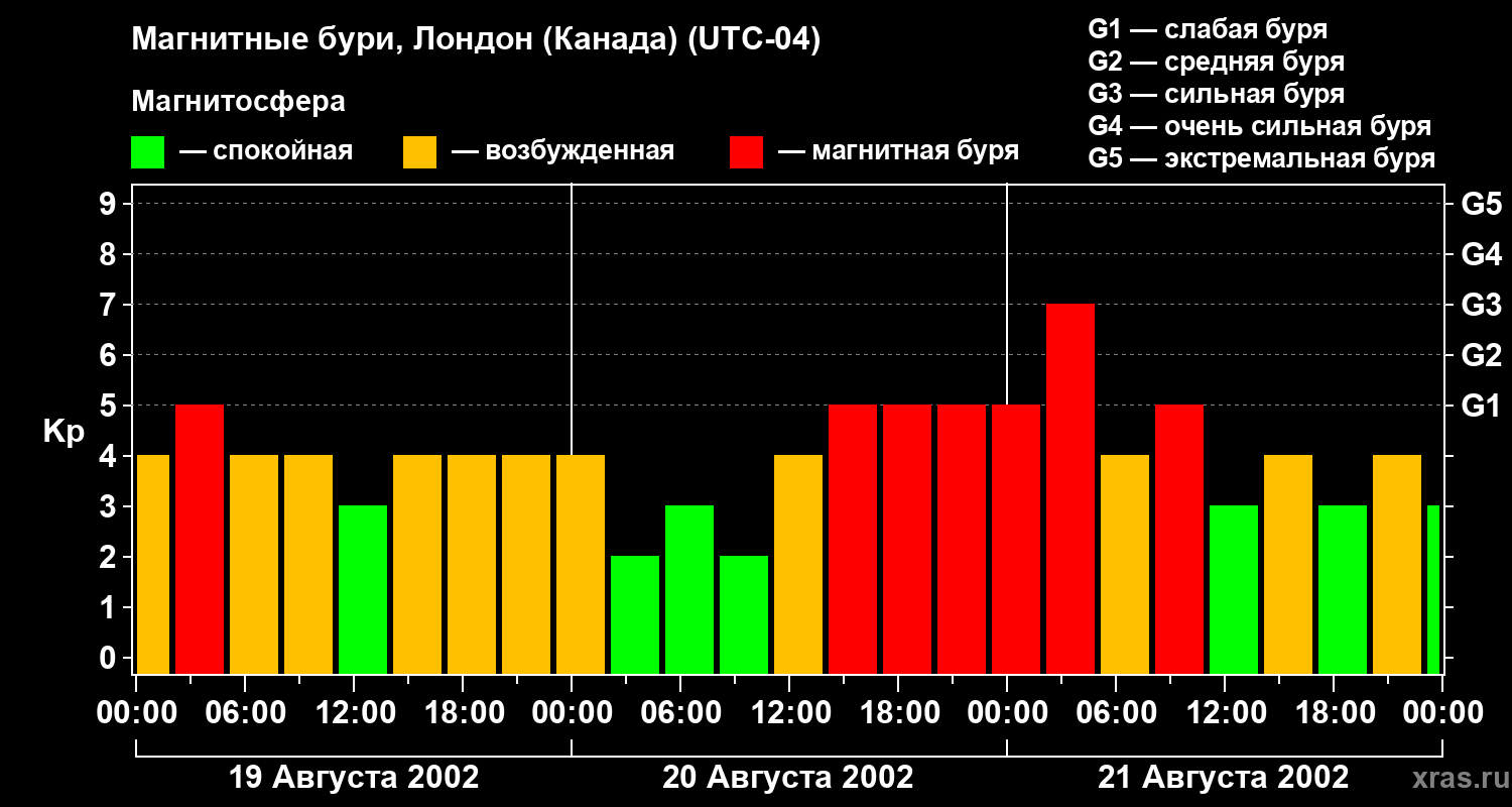 Магнитные бури Лондоне (Канада) — 21 августа 2002 года