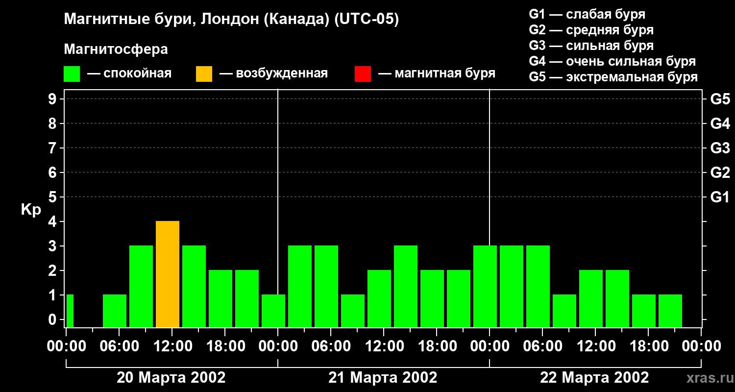 Магнитные бури Лондоне (Канада) в марте 2002 года