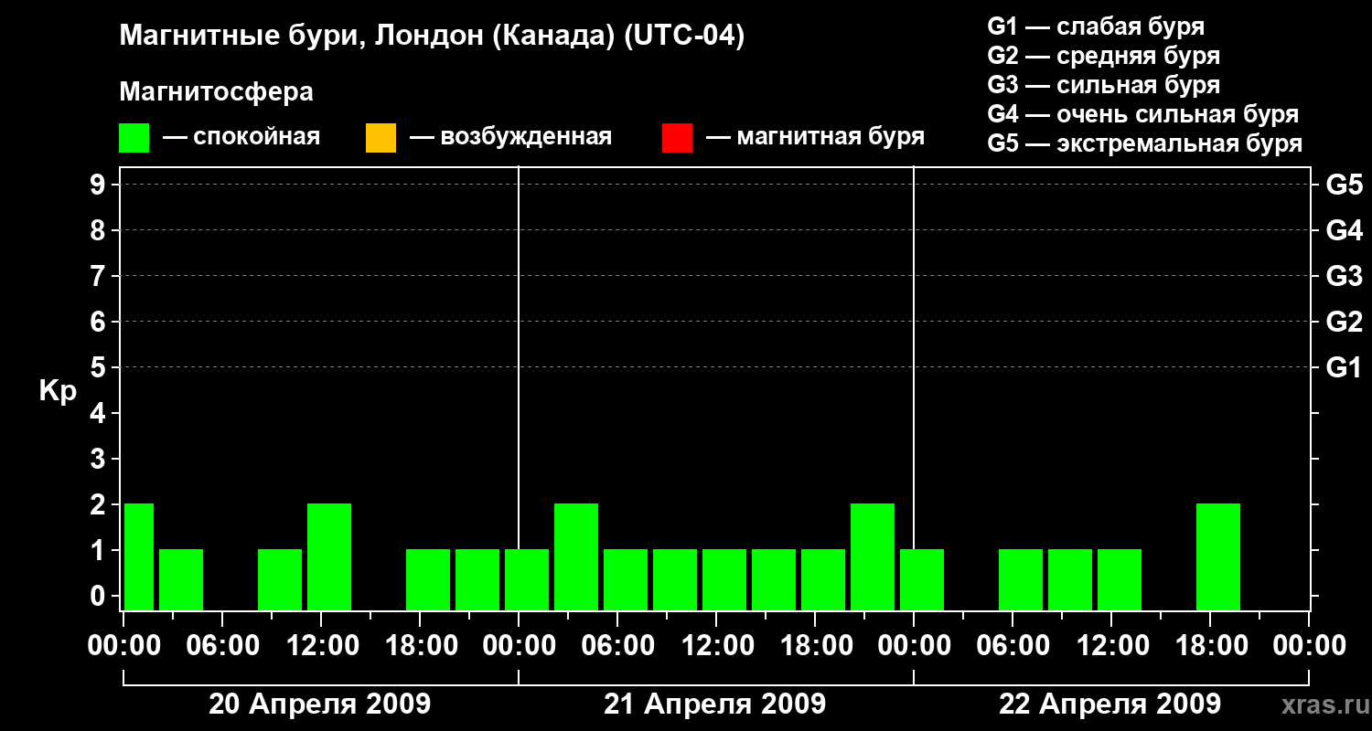 Магнитные бури Лондоне (Канада) в апреле 2009 года