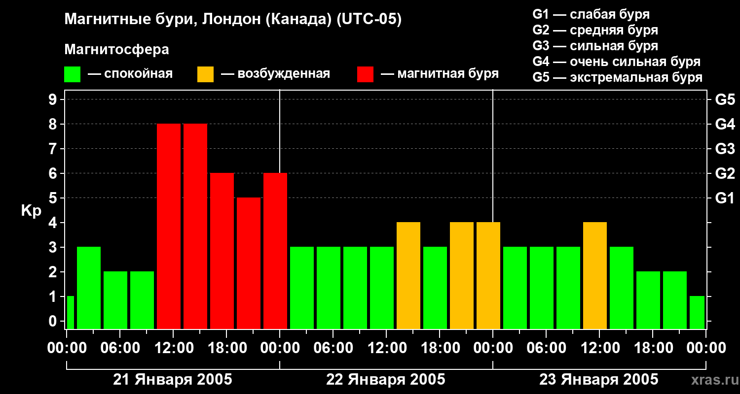 Магнитные бури Лондоне (Канада) в январе 2005 года