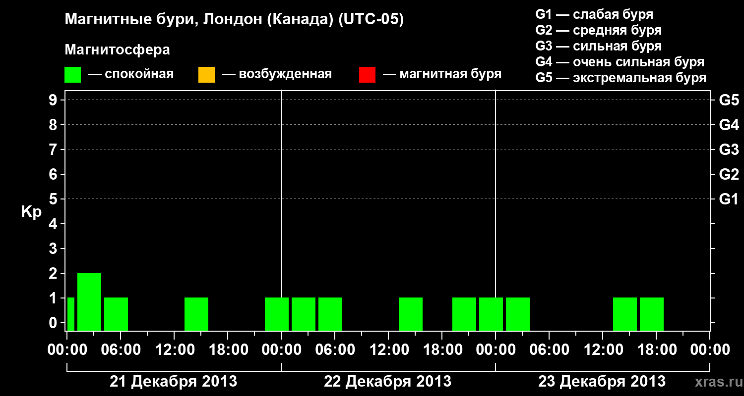 Магнитные бури Лондоне (Канада) 23 декабря 2013 года