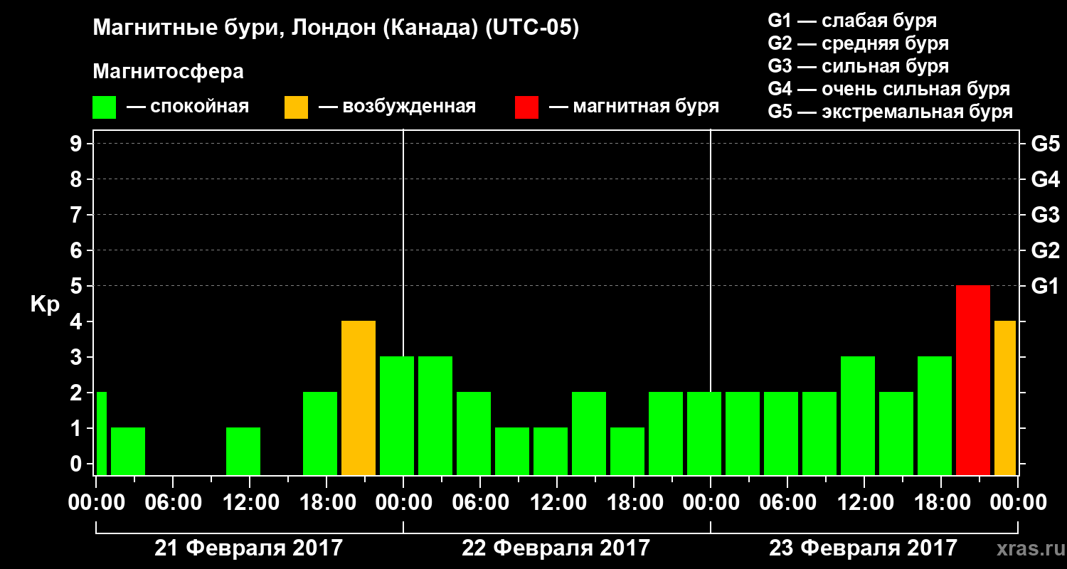 Магнитные бури Лондоне (Канада) 23 февраля 2017 года