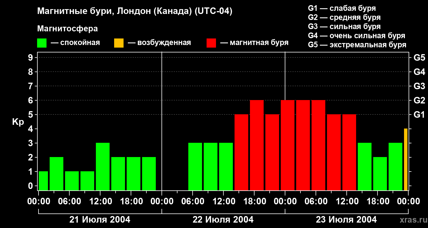 Магнитные бури Лондоне (Канада) — 23 июля 2004 года