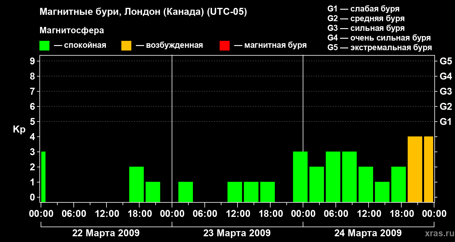 Магнитные бури Лондоне (Канада) — 24 марта 2009 года