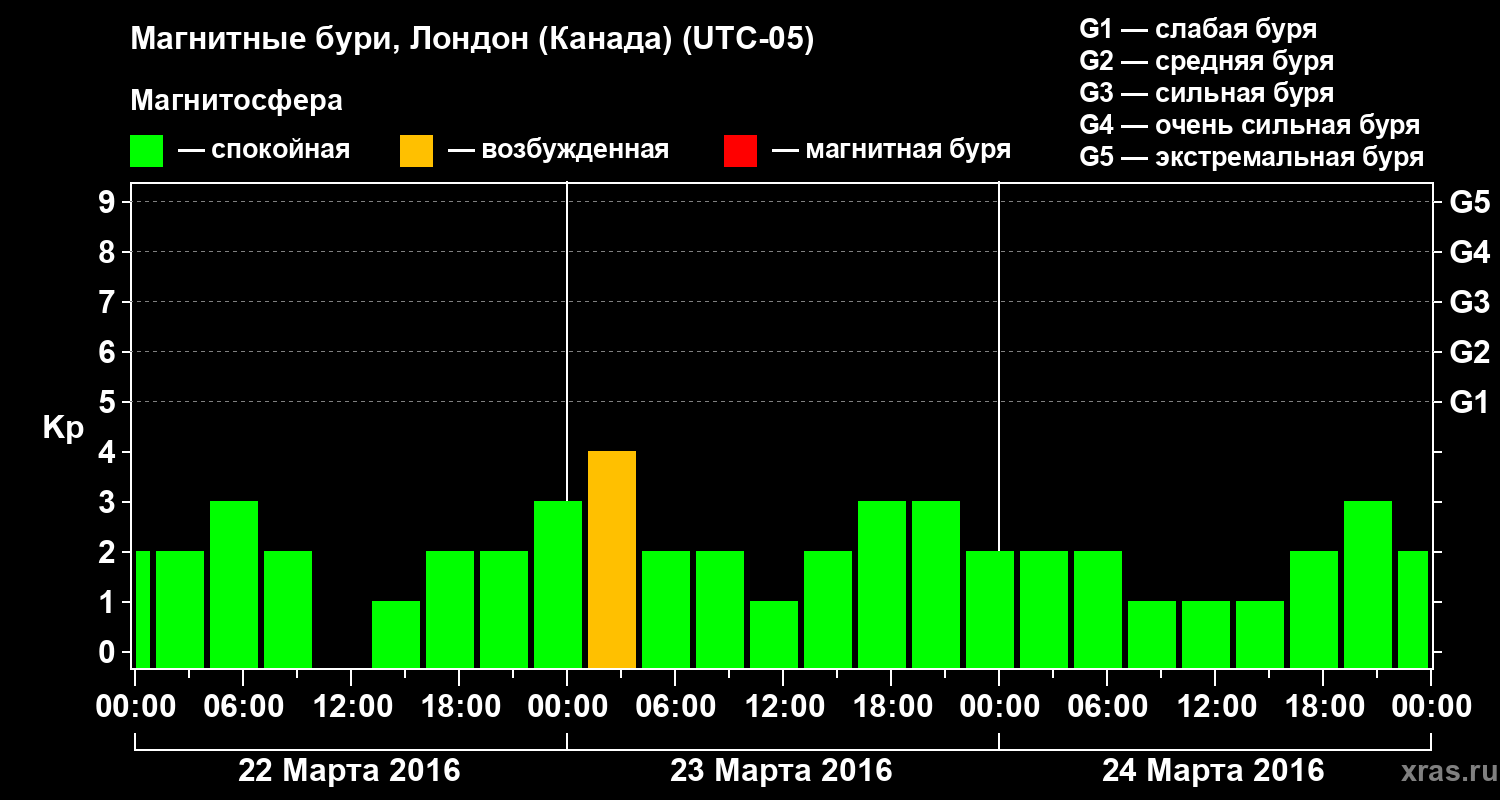 Магнитные бури Лондоне (Канада) 24 марта 2016 года