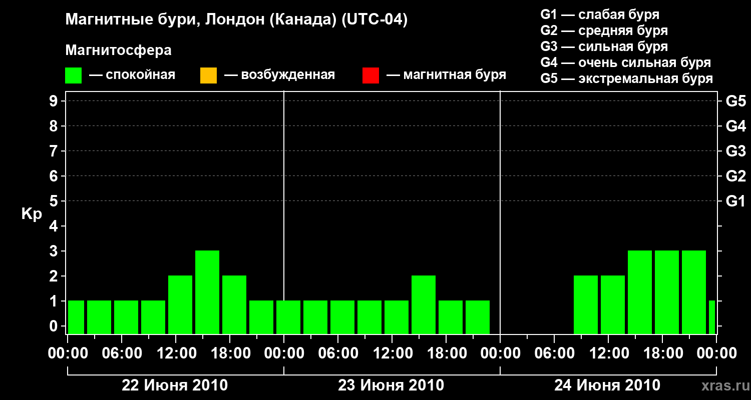 Магнитные бури Лондоне (Канада) 24 июня 2010 года