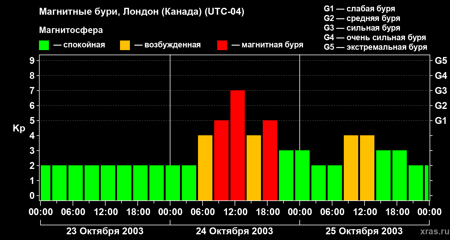 Магнитные бури Лондоне (Канада) — 25 октября 2003 года