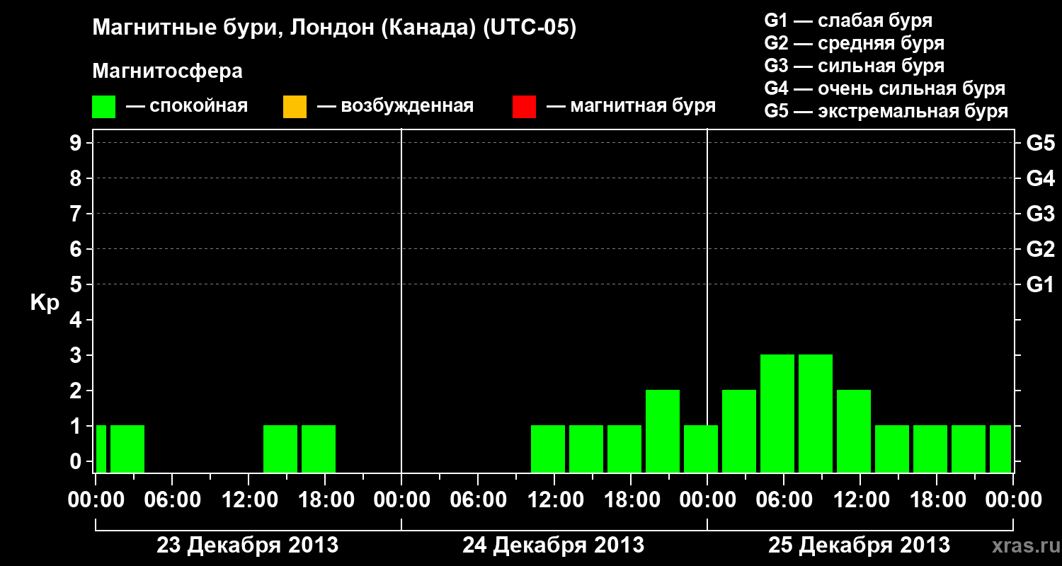 Магнитные бури Лондоне (Канада) 25 декабря 2013 года
