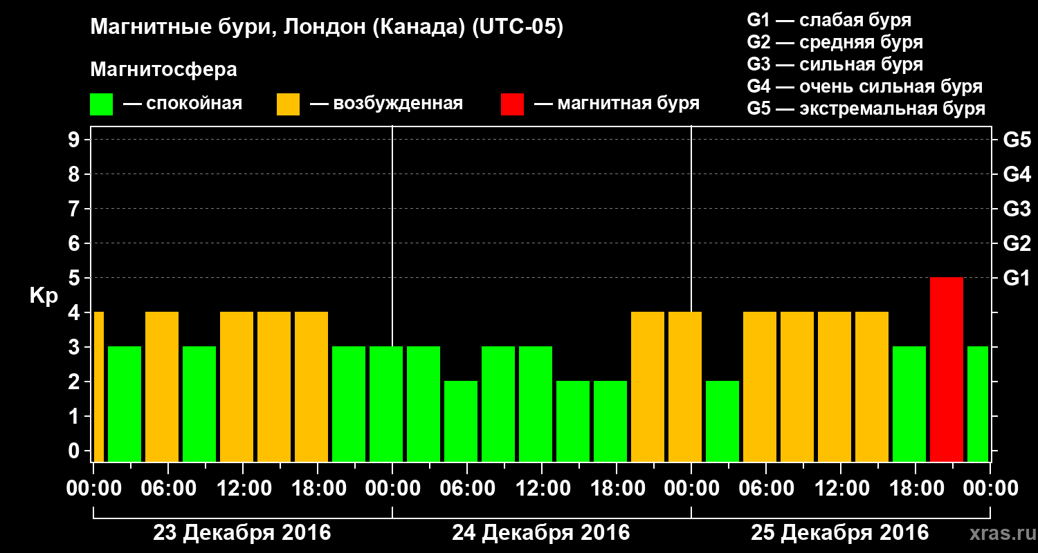 Магнитные бури Лондоне (Канада) 25 декабря 2016 года