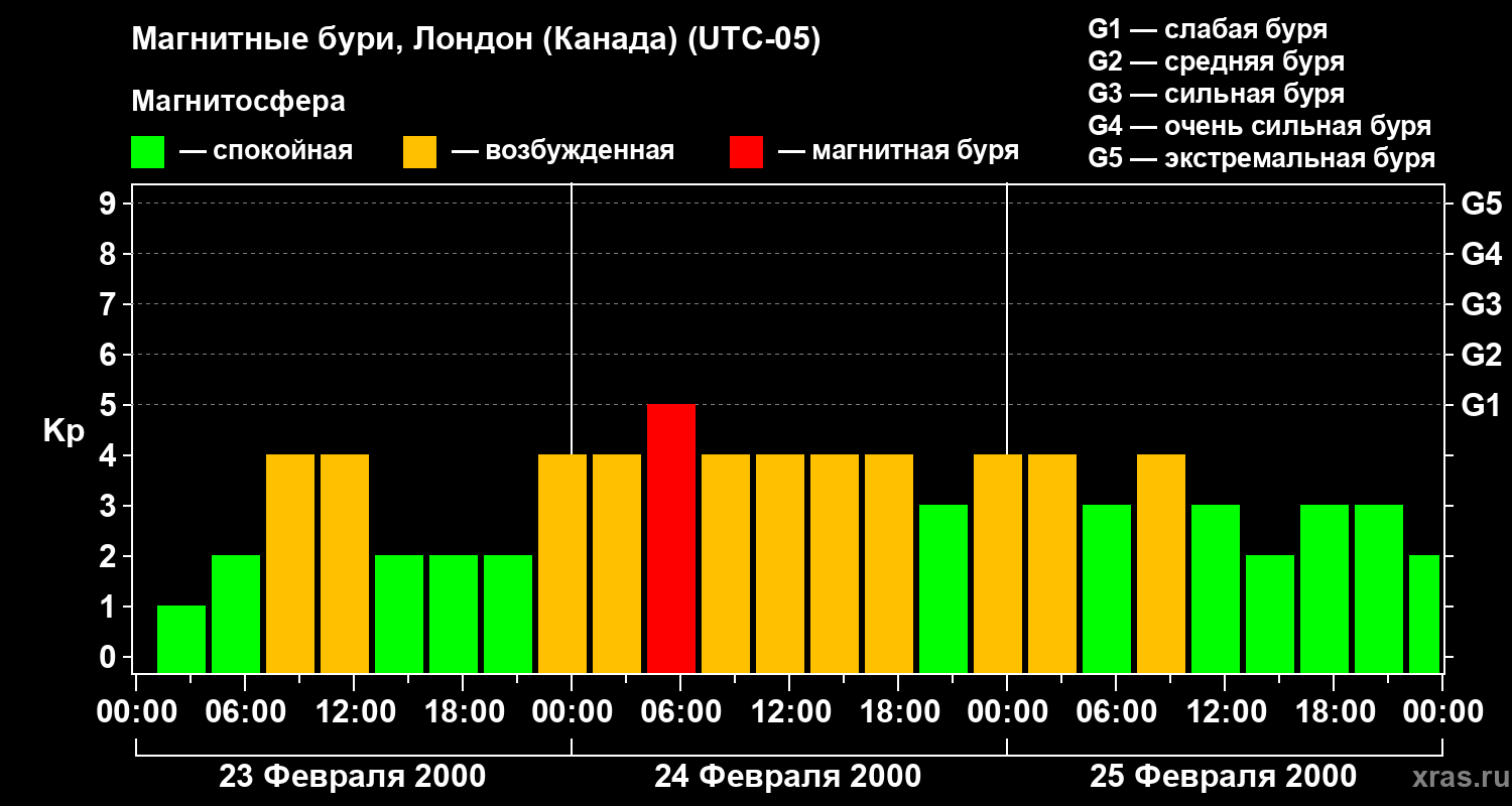 Магнитные бури Лондоне (Канада) — 25 февраля 2000 года