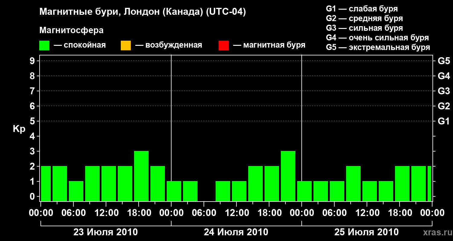 Магнитные бури Лондоне (Канада) 25 июля 2010 года