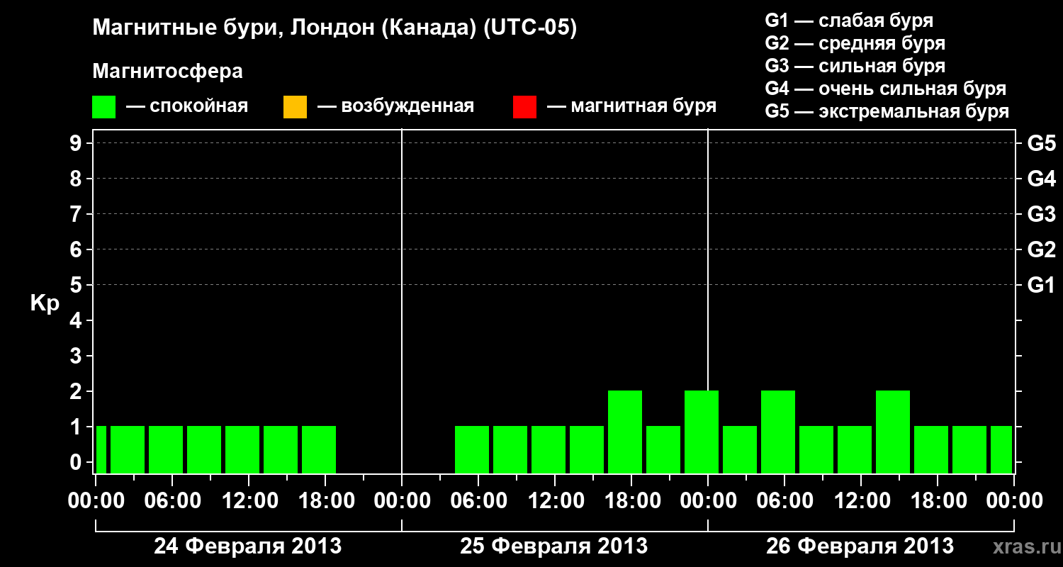Магнитные бури Лондоне (Канада) в феврале 2013 года