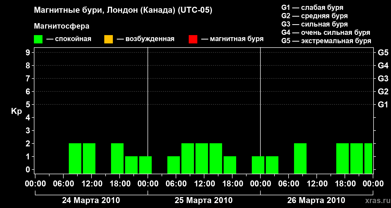 Магнитные бури Лондоне (Канада) 26 марта 2010 года