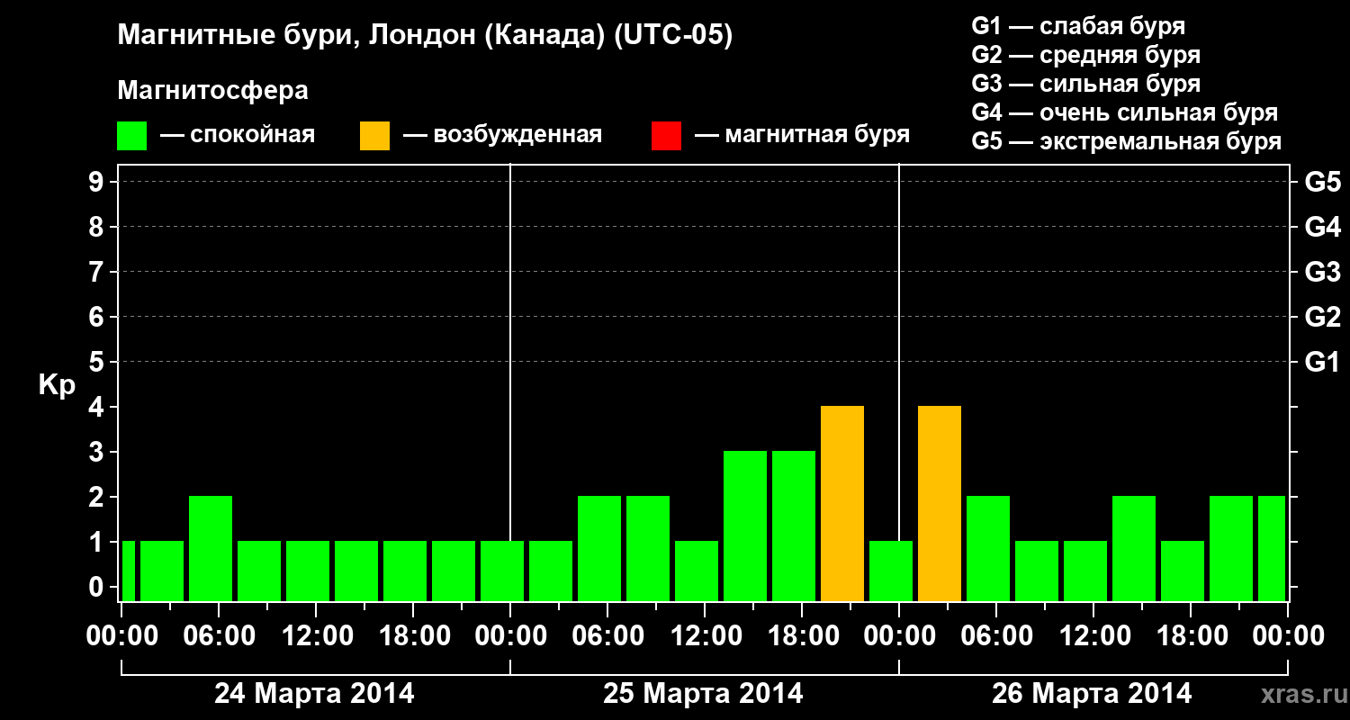 Магнитные бури Лондоне (Канада) 26 марта 2014 года
